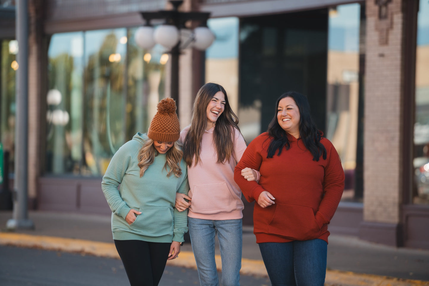 Woman wearing a gray sweater with a snowy mountain background
